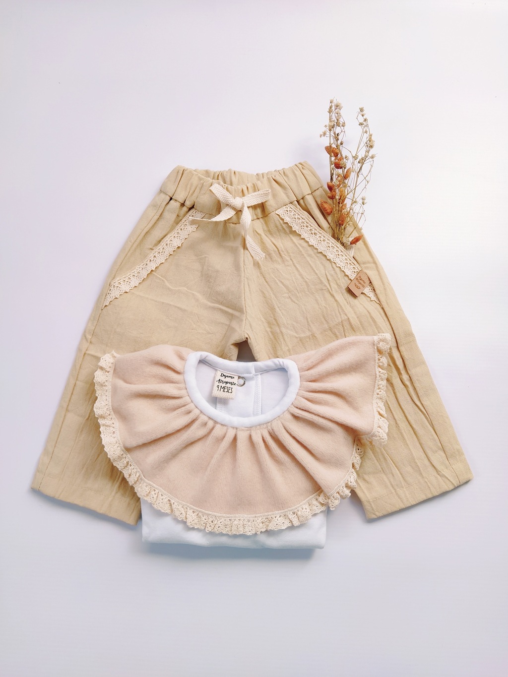 Body realizado en algodón 95% y spandex 5% la calidad es hermosa, suave y duradero. Con cuello de lanilla y detalle de puntilla.